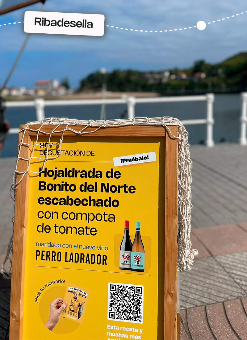 Podrás degustar una riquísima hojaldrada de Bonito escabechado con comporta de tomate, aprender ideas con nuestro recetario de platos para sacar partido a este producto y, además, presentamos en exclusiva el nuevo vino Perro Ladrador que, por supuesto, podrás probar (de venta exclusiva en Alimerka).