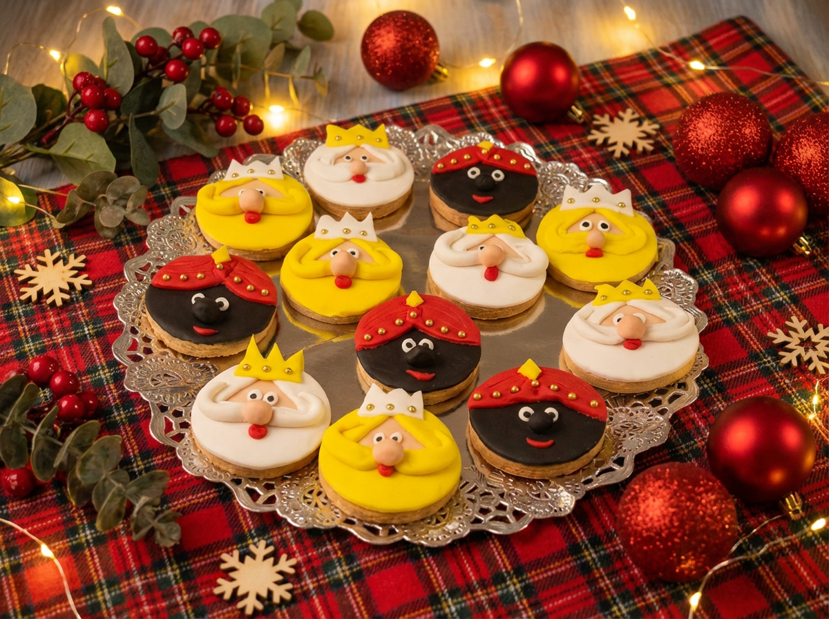 Las Galletas Navideñas de Reyes Magos son una forma dulce y creativa de celebrar una de las tradiciones más especiales de estas fechas. Su masa suave y aromática sirve como lienzo perfecto para decorarlas con fondant y dar vida a Melchor, Gaspar y Baltasar