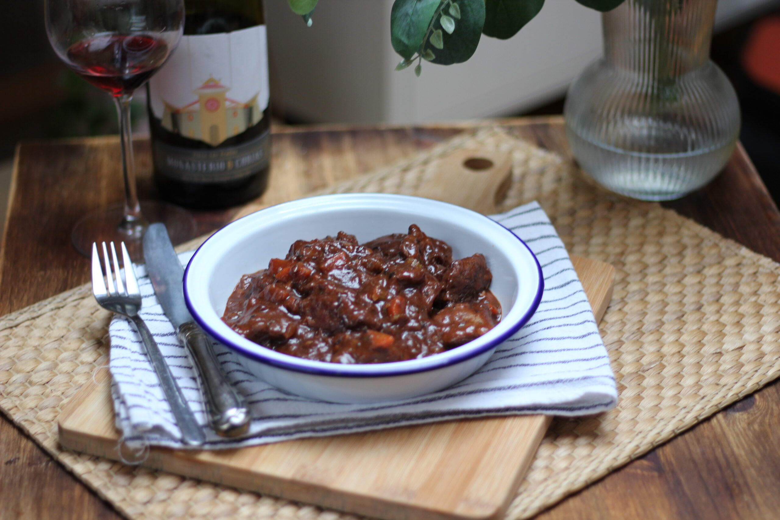 Ternera guisada al vino tinto de Cangas
