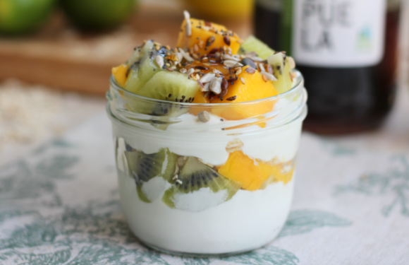 Vasitos de yogur con fruta, avena y semillas